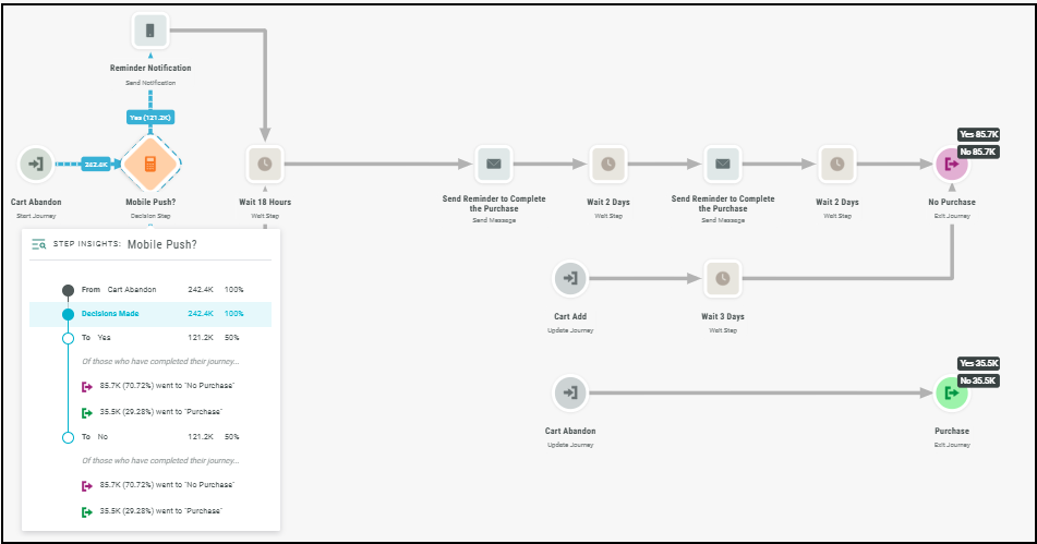 Journey Insights provide advanced analytics capabilities and are available on request.