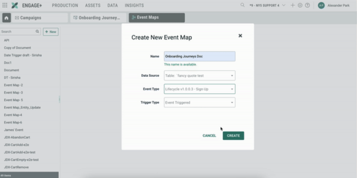 To configure your Sign-up Event, you need to create a new map for Sign-up using the same table as your journey and campaigns.