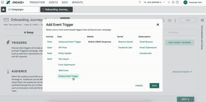 Now that you have created your campaign, navigate to the Setup tab. This where we can setup a Simple Event Trigger.