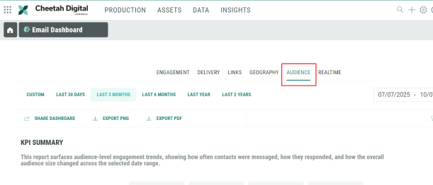 In Real-Time analytics, a brand-new Audience tab is now available in Email and SMS Dashboards (and already in Push).