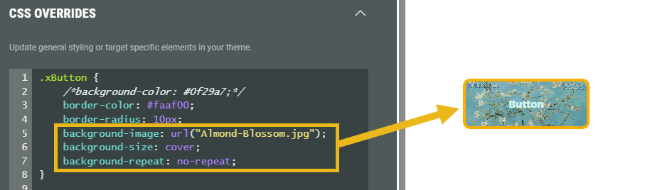 The CSS Overrides section allows you to update general styling or target specific elements in your theme, by manually writing CSS syntax in the field.