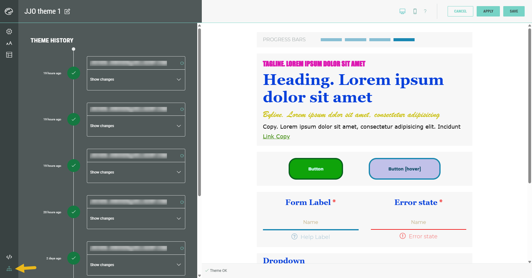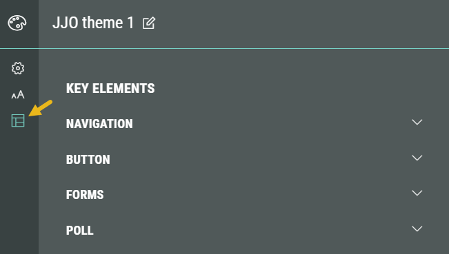 When you're editing a theme in the Theme Designer, you can see these left navigation items: