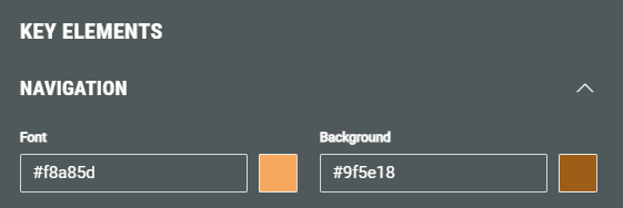 Both colors are by default inherited from the main theme's settings. You can customize them through the visual color picker or by entering a manual value in one of the following formats: #hex, rgb(), rgba(), browser constant, @variable, (formula).(note 1)