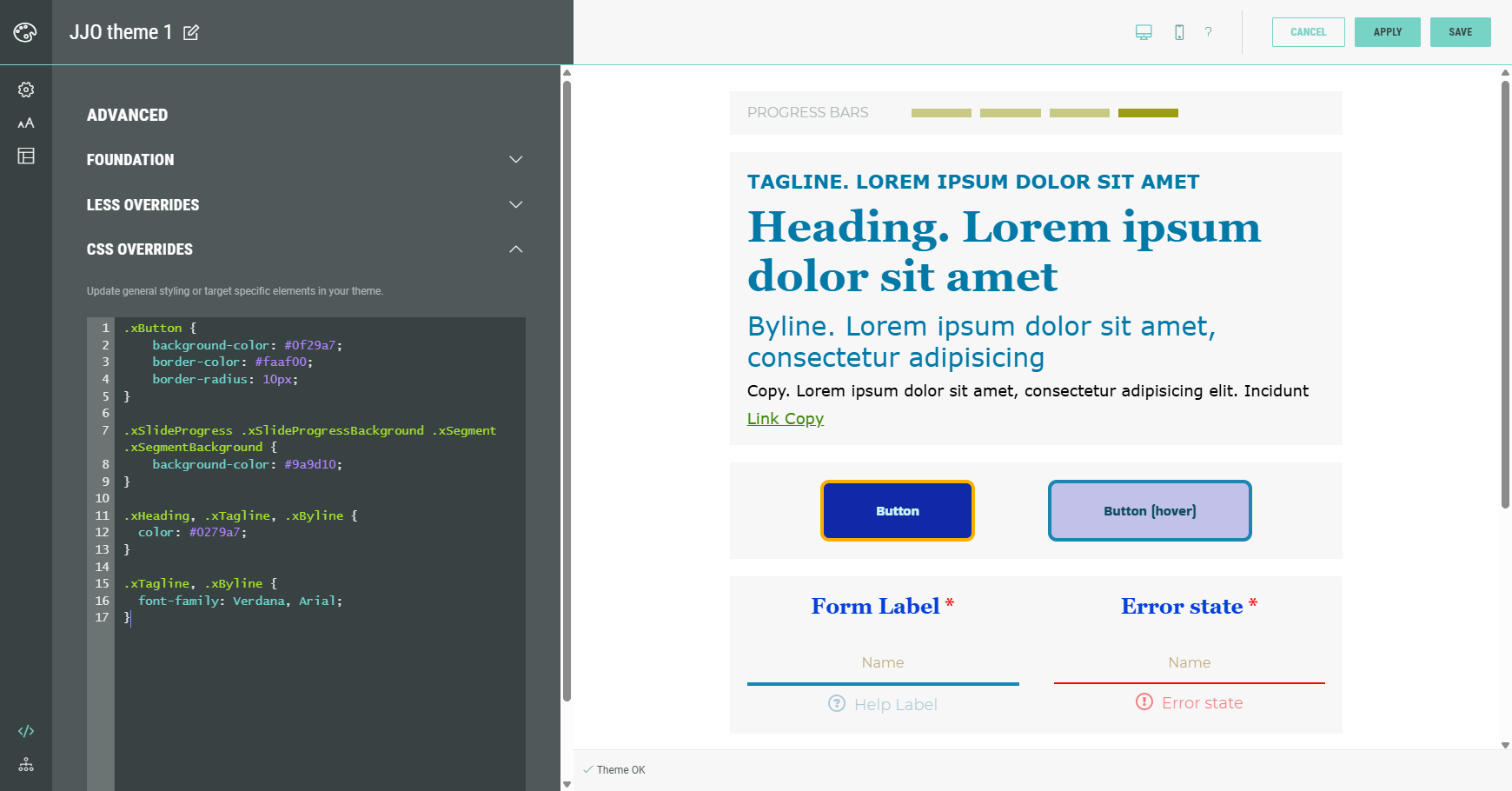 - Variables= "This value is inherited from your theme’s main settings. You can update the original variable or override it here."