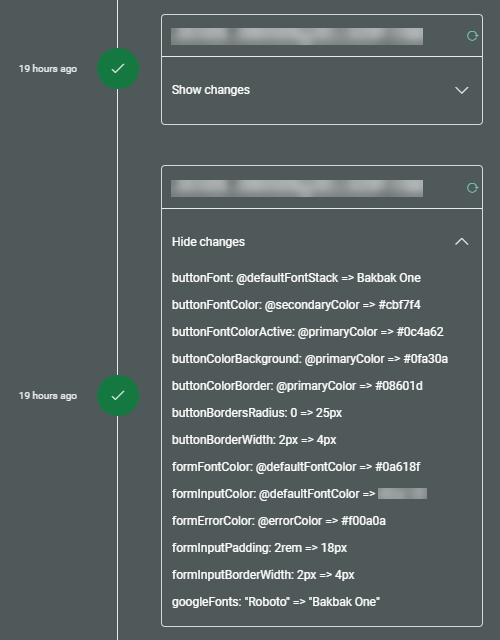 The actual changes that were done — You can show/hide changes by clicking the arrow on the right.
