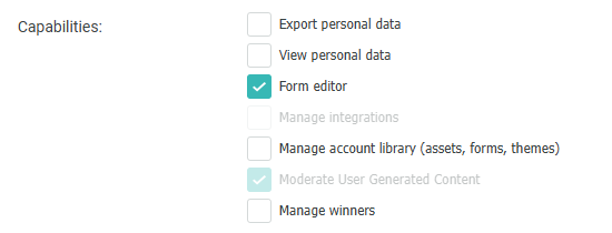 | Export Personal Data | Allows exporting entries and winners (including personal information). |