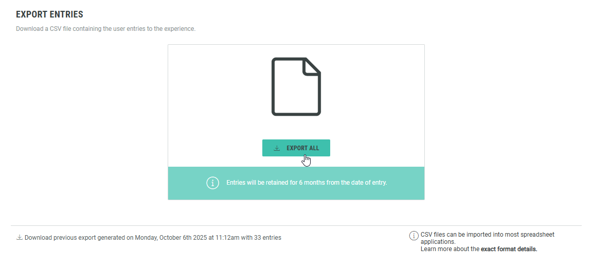 Note: The entry control criteria and maximum entries setting only apply when the Experience is submitted. This means participants who start but don't complete the Experience (e.g., if they drop off before submitting) won’t have their attempt counted toward these limits.