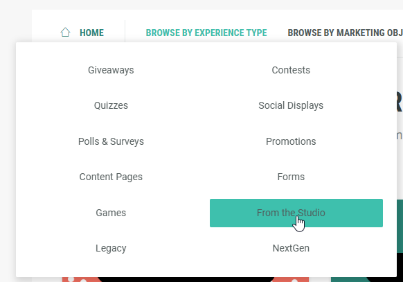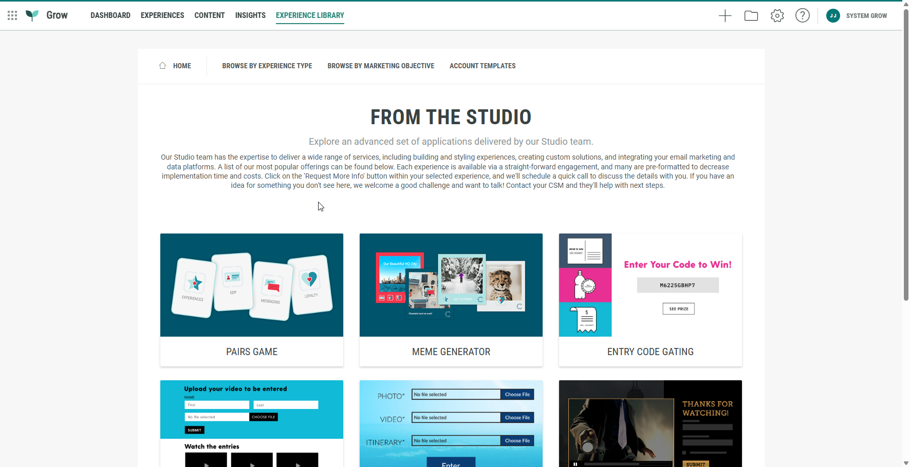 You can browse Experiences by type and marketing objective, and go to the templates set up for your account.