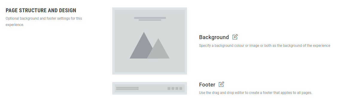 1. Page Structure and Design — You can update the background color and/or set a background image, and create a footer (which will apply to all pages).