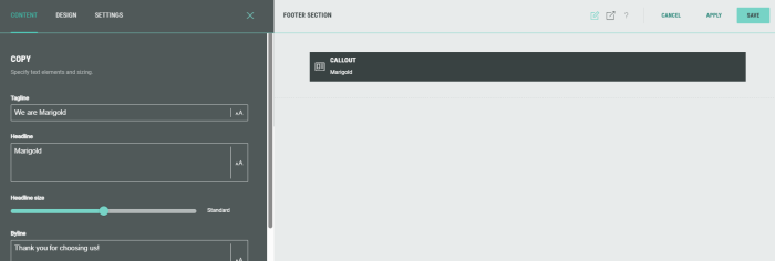 Note: Changes made here will only apply to this Experience and will not appear on other pages.
