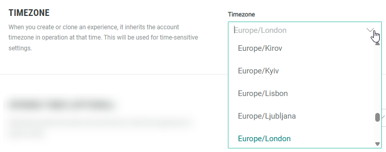 Note: When you create or clone an Experience, it inherits the account timezone in operation at that time.