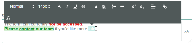 You can also specify a message to be displayed instead of the entry form when the Experience is closed for entry.