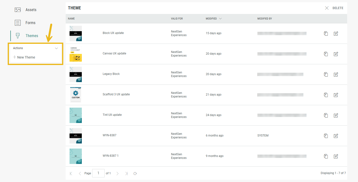 This shows an overview of all existing themes. From here, you can select + New Theme.