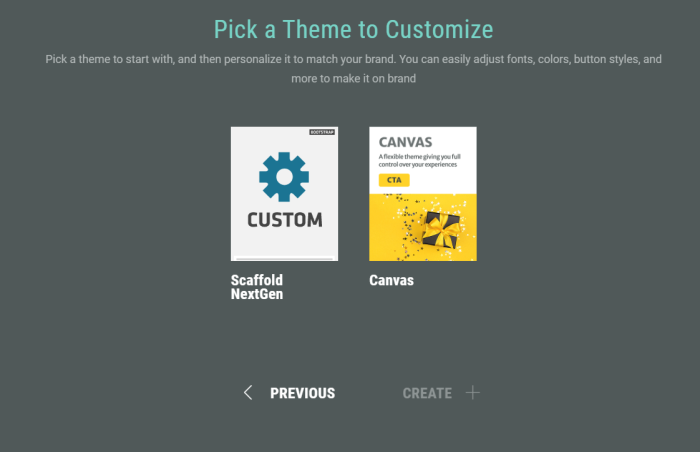 Pick a theme template to start from: Canvas or Scaffold.
