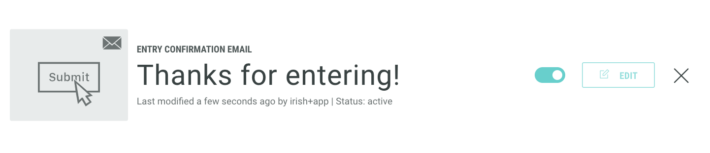 Subject: In the screenshot above, we've set the Subject of the email to the name of the campaign but you could use a hardcoded value here (e.g. Thanks for your entry!).