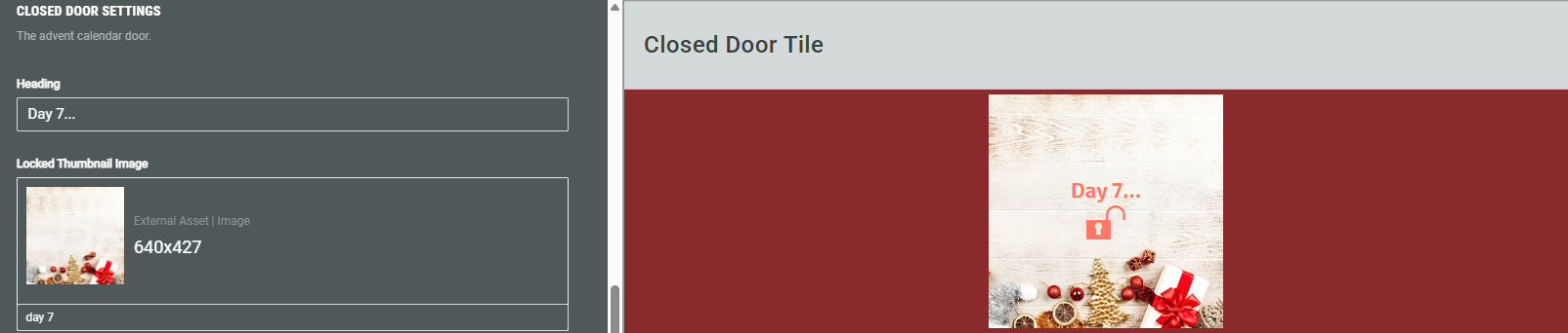 Example: For our day 7 promotion, we add a heading and image for when door 7 is closed.