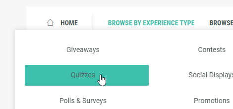 For example by hovering Browse by Experience type and then selecting Quizzes.