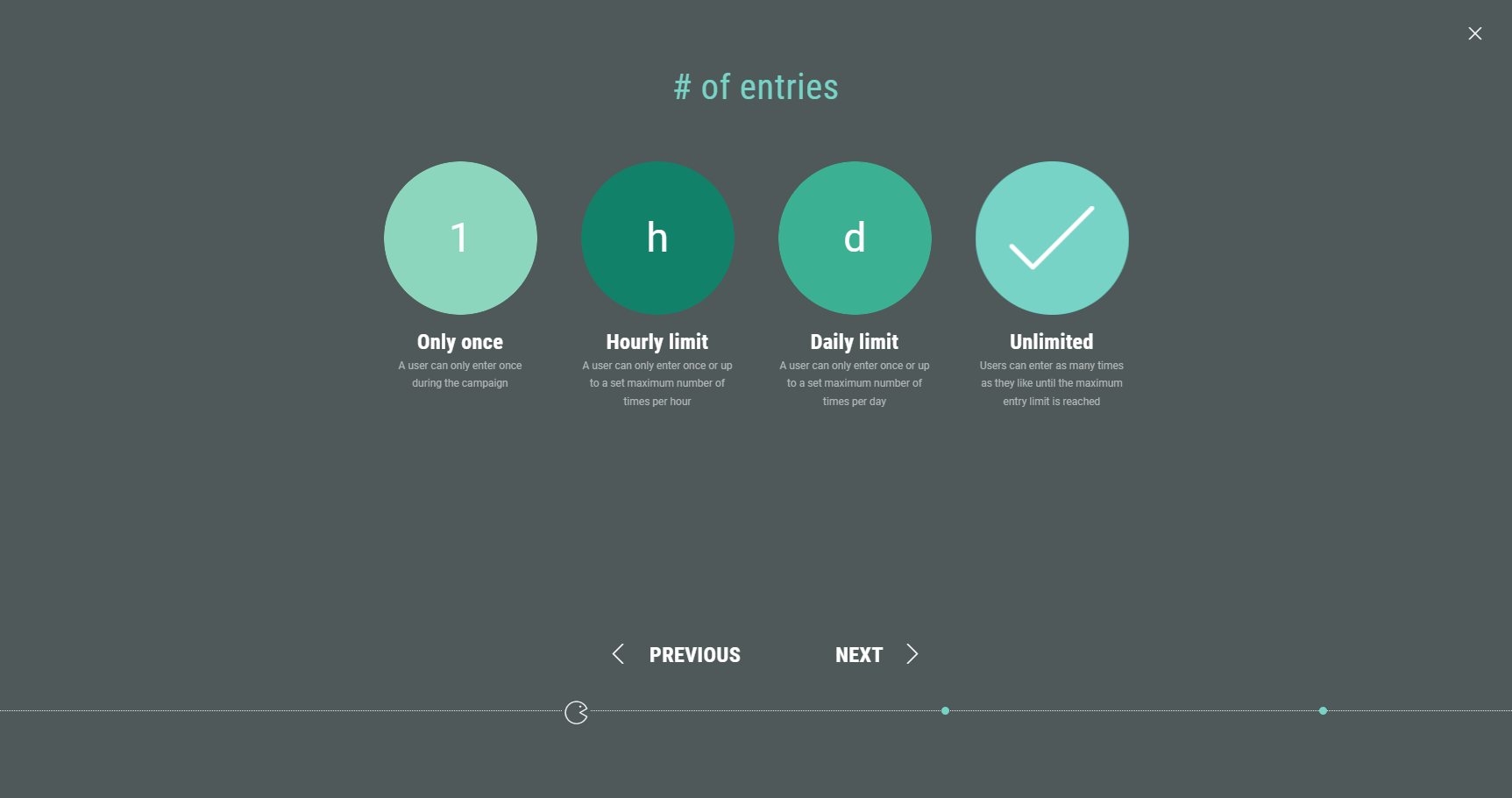 This can be: Only once, a maximum number of times per hour or day, or an unlimited number of entries.