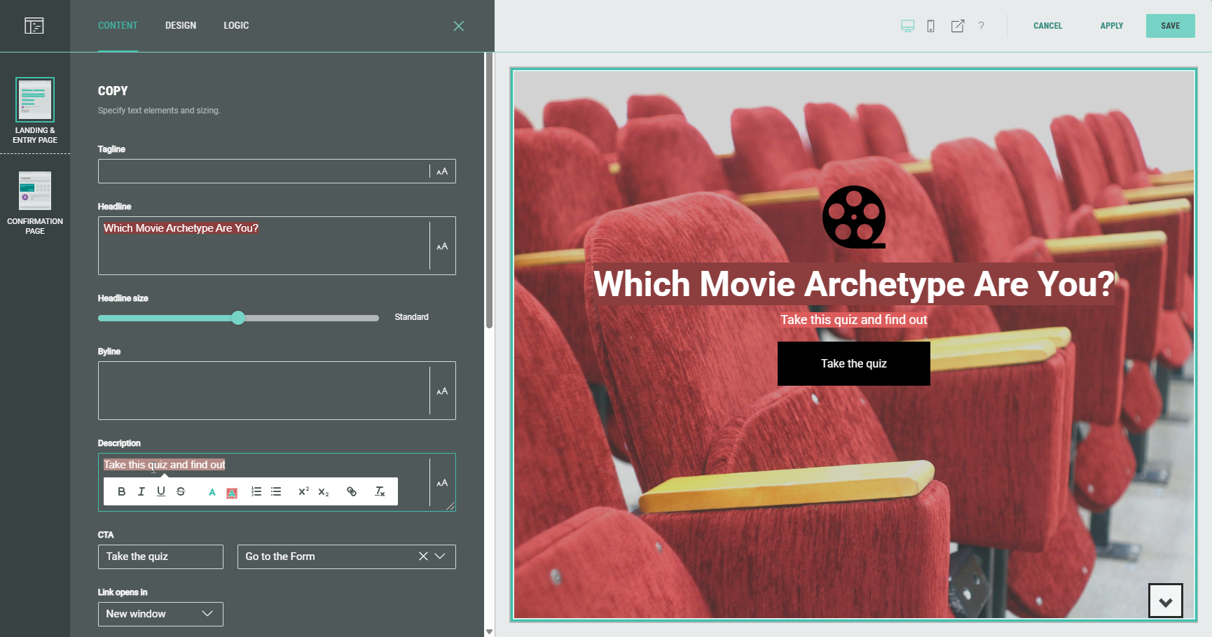 Click Preview Experience to launch a Personality Quiz test version. That way you know how it will look and feel for actual Experience entrants later on.
