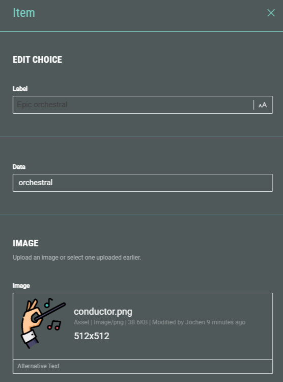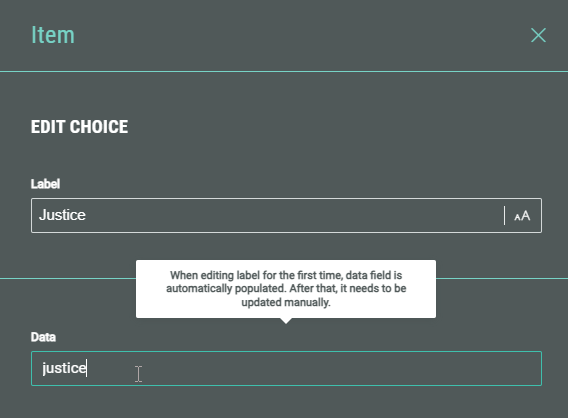 Don't forget to change the Data value of each option, so it's a clear value that corresponds to the option.
