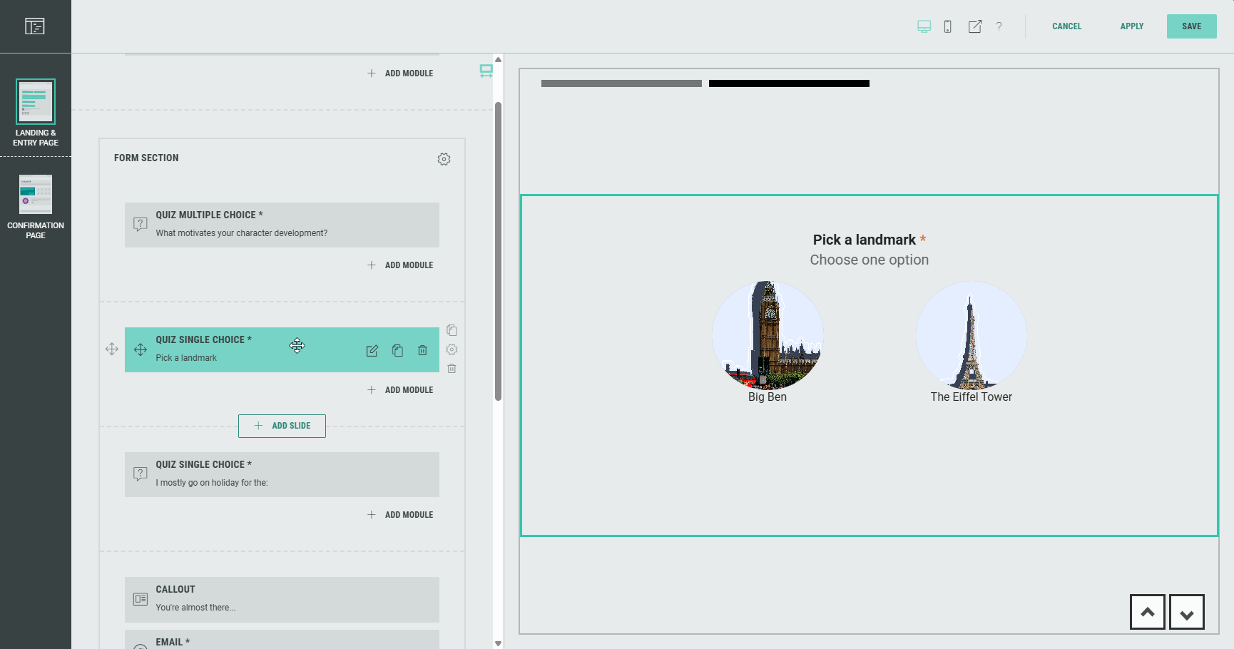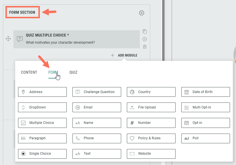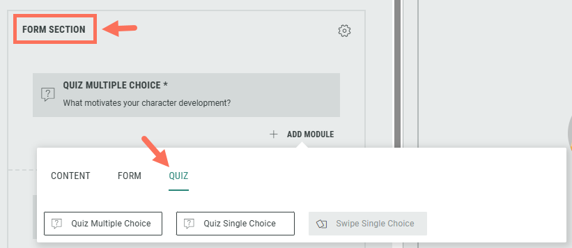 Form Section slide 3 contains another Quiz Single Choice module. Modify it to your needs.