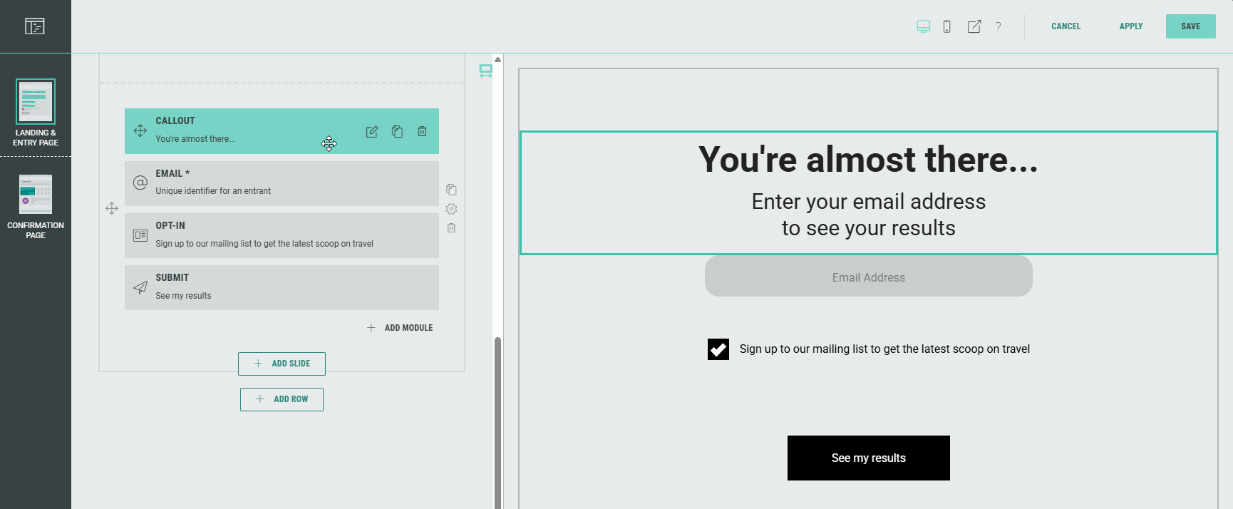 The Landing & Entry Page is the first page Experience entrants will see, where data capture takes place.