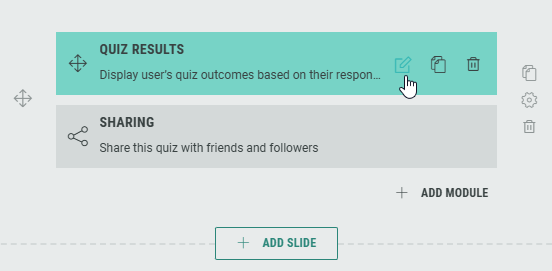 Click on the Pencil icon at the right of the Quiz Results module to edit it.