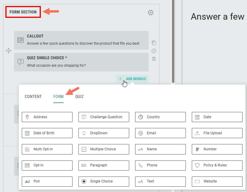 Form modules can only be added in the Form Section.![]()