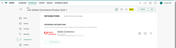In Grow, an Adobe Commerce API key needs to exist to be able to create an Adobe Commerce Product Quiz Experience.