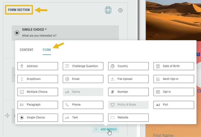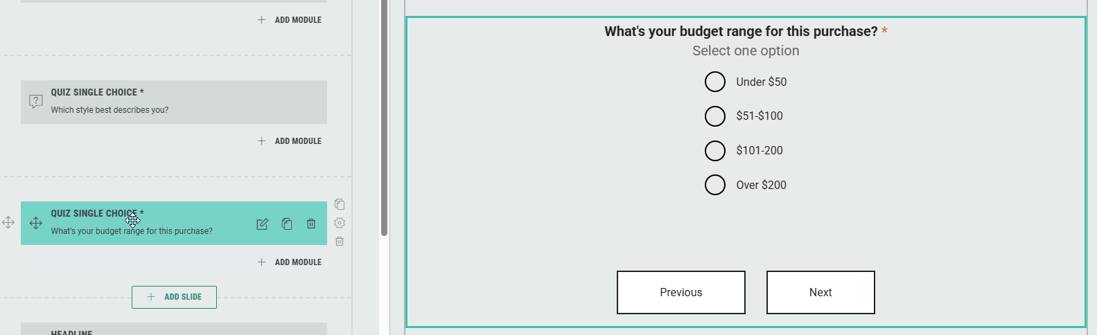 - Edit the Quiz Single Choice and Quiz Multiple Choice modules, and define options to choose from.