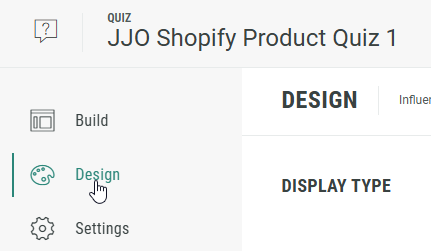 The Design tab can be found directly below the Build tab. Here, you can customize your Experience with the Display Type (Page- or Slide-based), change or edit the Theme, and add a footer and background in the Page Structure and Design section.