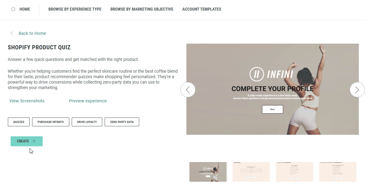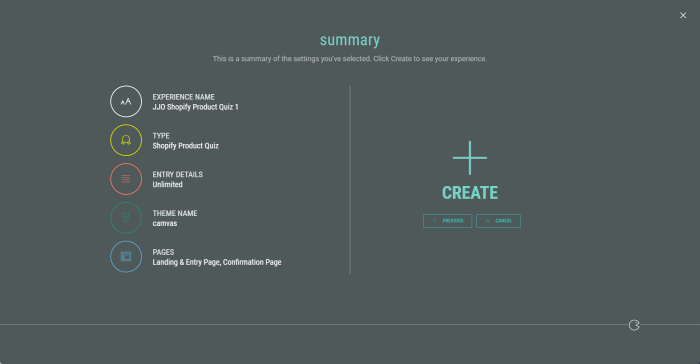 - Finally, you're presented with an overview of your Experience setup. If you’re happy, click Create to finalize your settings and create the Experience.