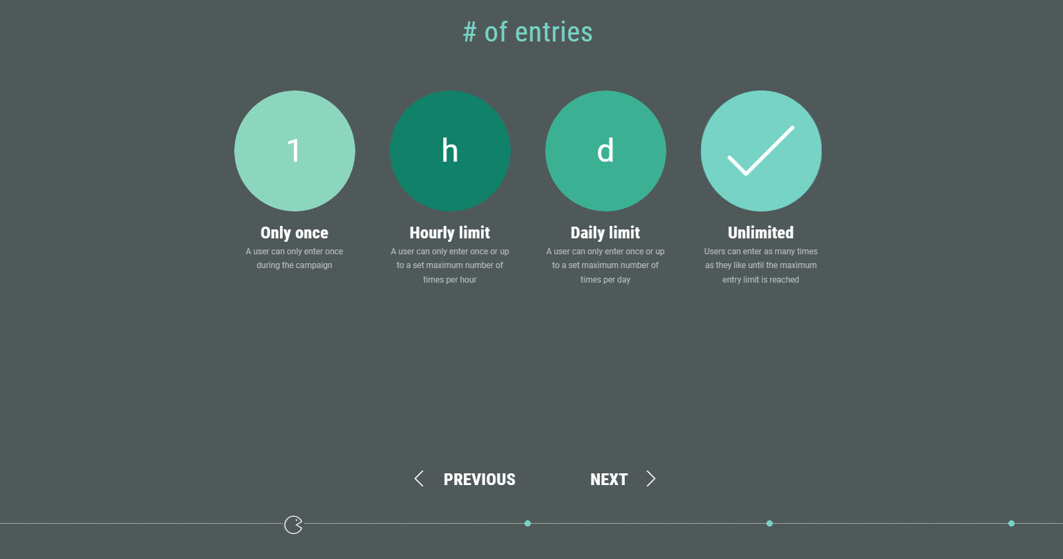 This can be: Only once, a maximum number of times per hour or day, or an unlimited number of entries.