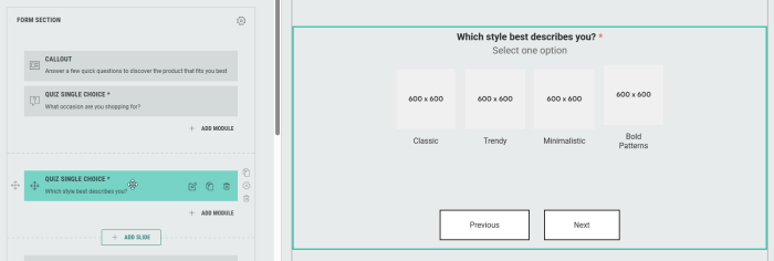- Quiz Single Choice Module for outcome-based quiz Experiences