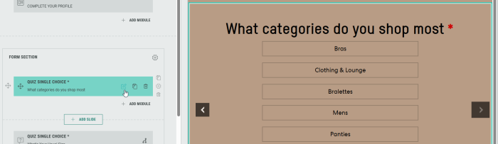 The data values used in the quiz question options should match the tag values used in Shopify.![]()