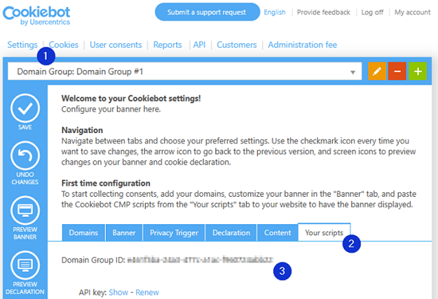 To find your CBID (Cookiebot Identifier) on the Cookiebot site: