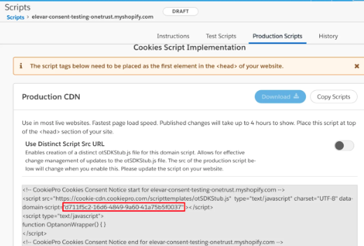 5. Your Data Domain Script & SRC URL will be located in the Production CDN Script.