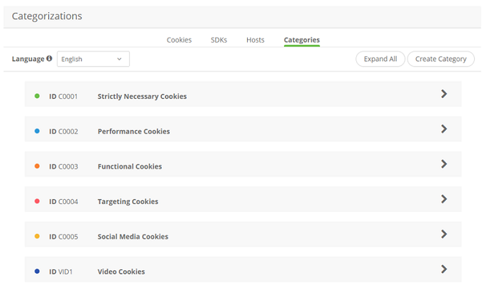 In One Trust, groups of cookies are identified using an alphanumeric group ID. If you integrate your banner script with a tag manager application, you will need to use the group IDs to set up your tag manager. You can create a custom ID for each group of cookies or use the IDs assigned by default.