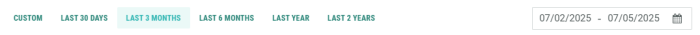 You can set one of the following date ranges: Custom, Last 30 days, Last 3 months, Last 6 months, Last year, Last 2 years.