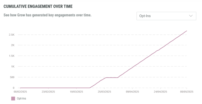 See how Grow has generated key engagements over time, presented in a line chart by KPI.