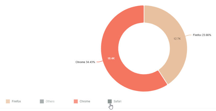 Hovering with the mouse cursor over a piece of the pie chart shows a tooltip with the browser and exact KPI value.
