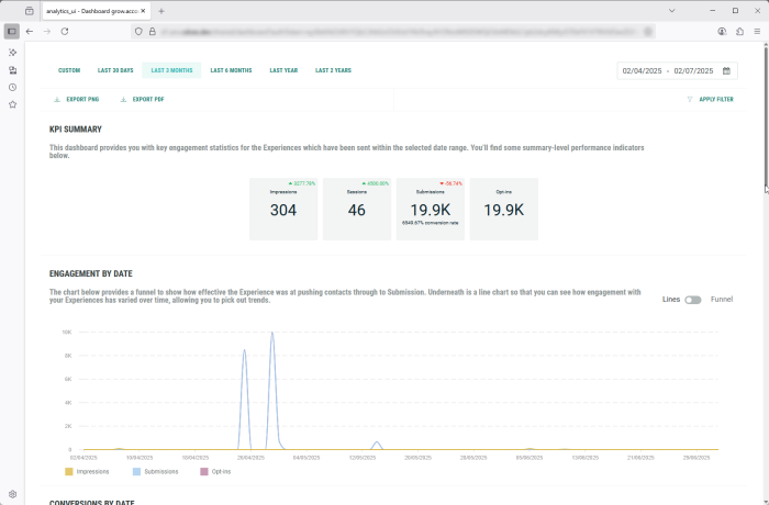 Engagement by date shows how effective the Experience was at pushing participants through to submission (=submitted the form).