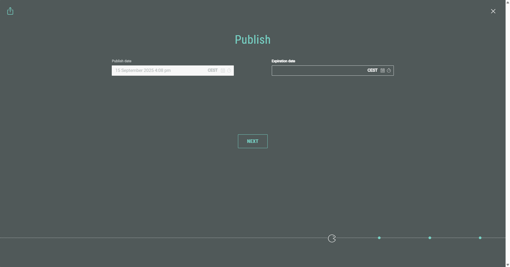On the Publish step, you can decide to schedule the Experience, making it available for participants on a later date and time), or to publish now (making it available immediately).