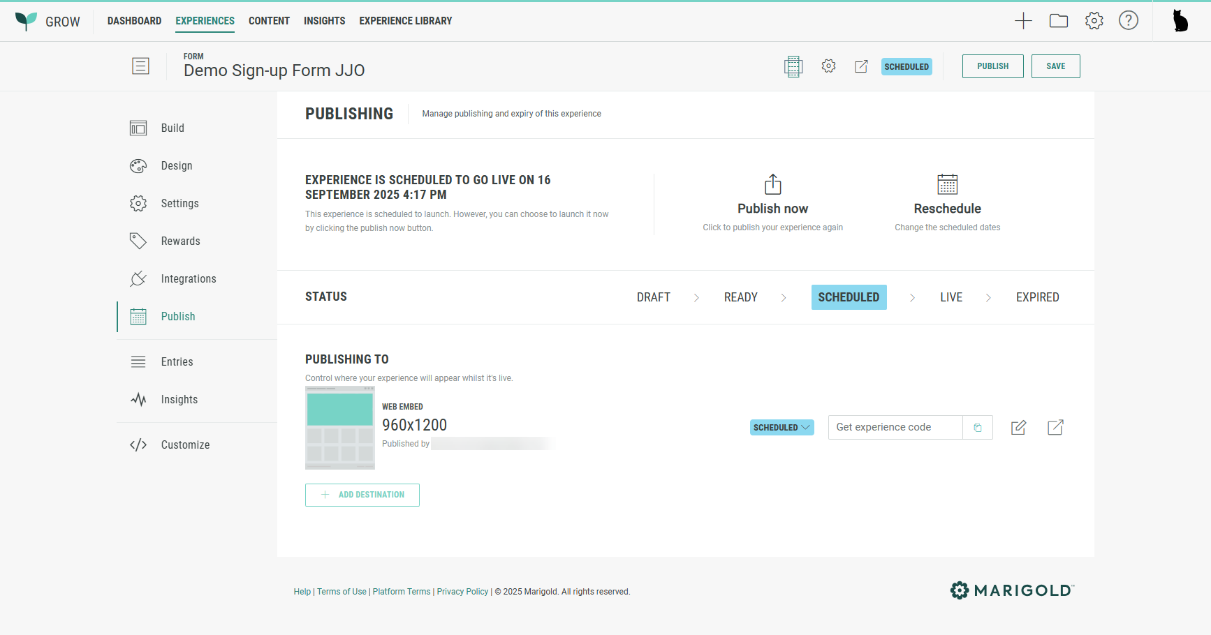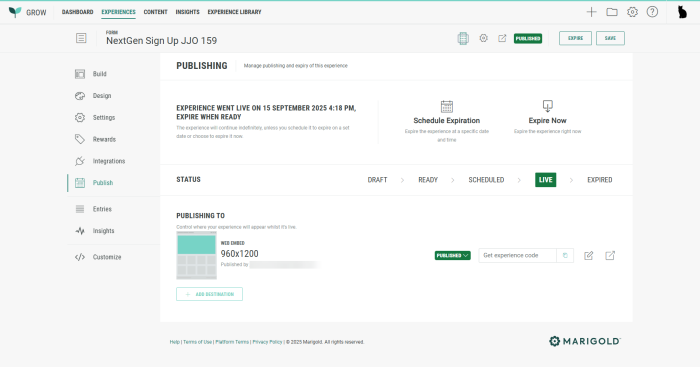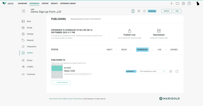 - Schedule or Publish your Experience — Depending on your publication time selection earlier on.