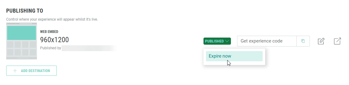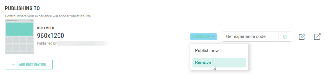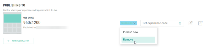 Web EmbedExperiences that are either published or scheduled, both display the following options in the publishing destinations section at the bottom: