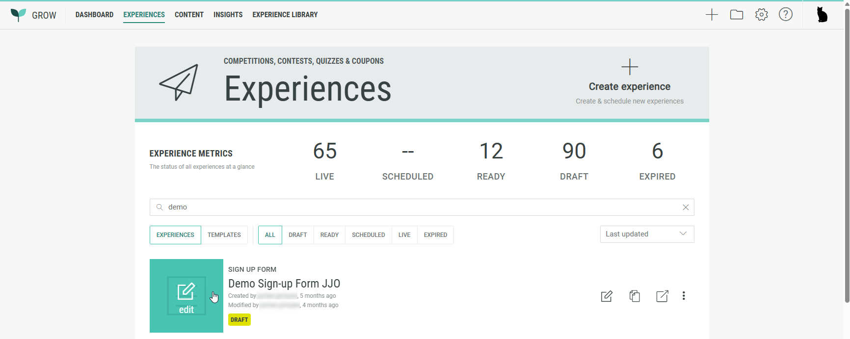 Note: You can re-publish an expired Experience within 30 days of expiry.
