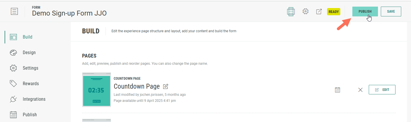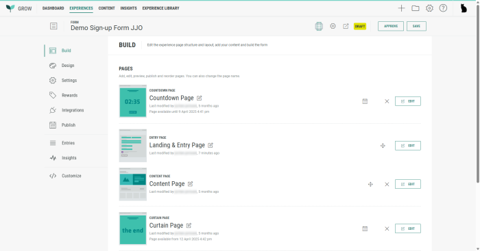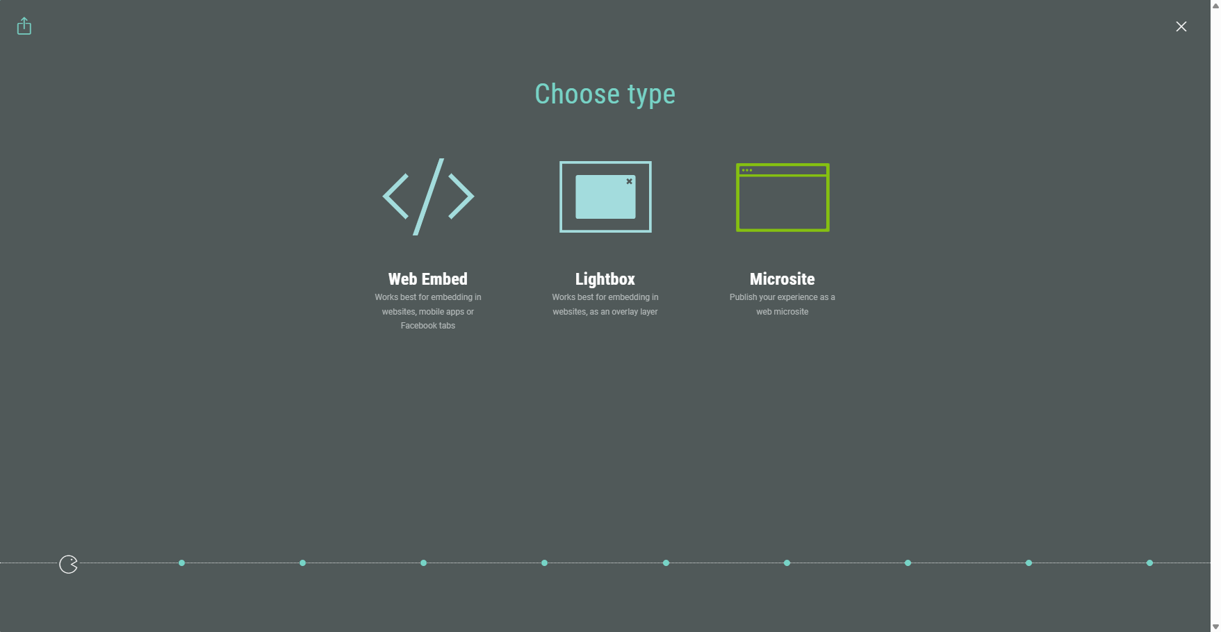 After creating an Experience, it's saved as a draft and you'll need to publish it to your chosen format such as Microsite, Web Embed or Lightbox, depending on where you want your audience to engage.