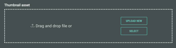 - The last step is to add a Thumbnail asset, either via drag and drop or uploading.