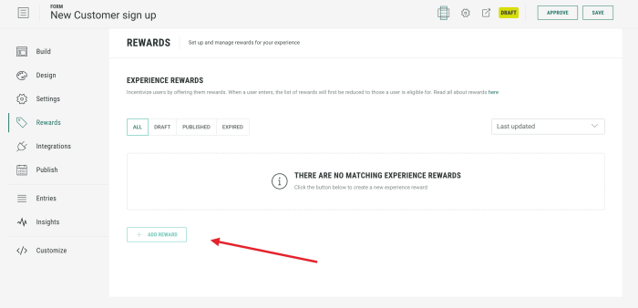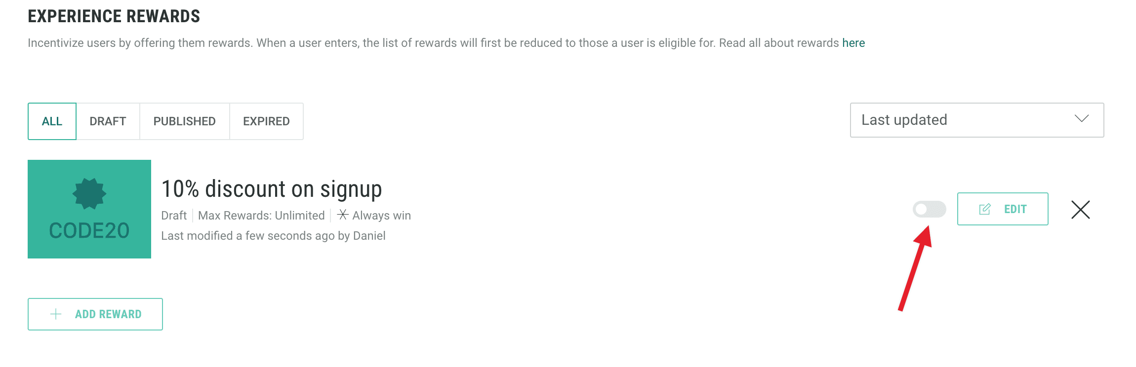 Now that you have configured and saved your reward, you will land back on the Rewards area inside your Experience.