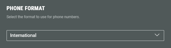 For the International (with country picker) option, phone numbers will be collected in the E.164 format, which is the international telephone numbering standard defined by the International Telecommunication Union (ITU). It ensures global consistency in phone numbers so that they can be correctly routed across countries and networks.